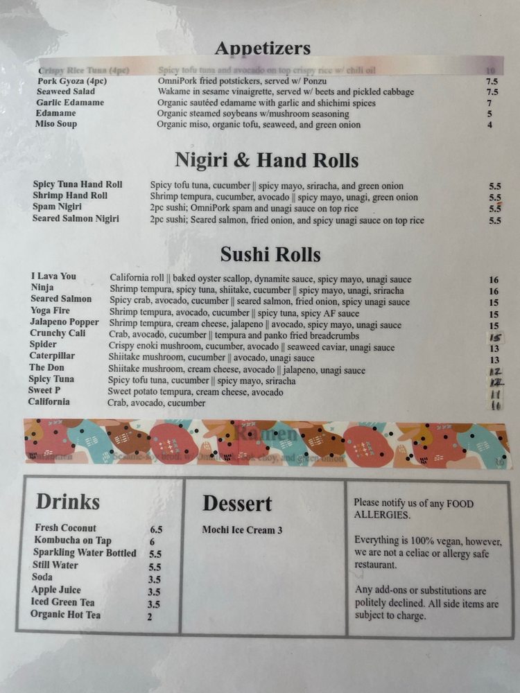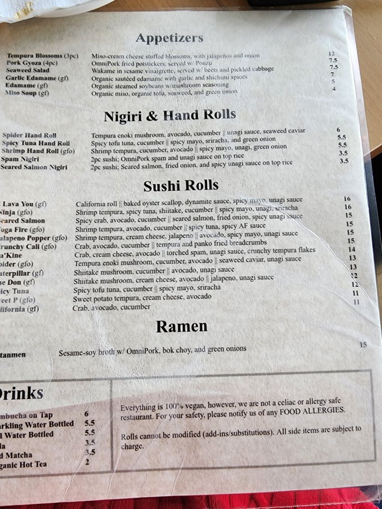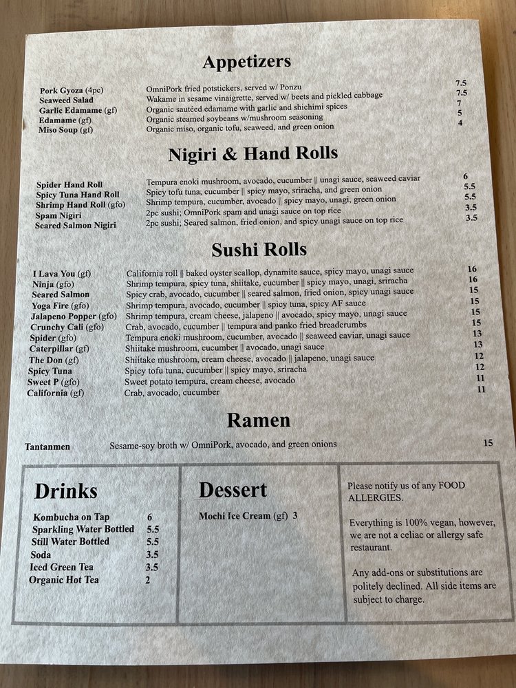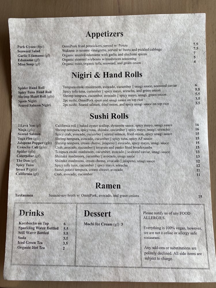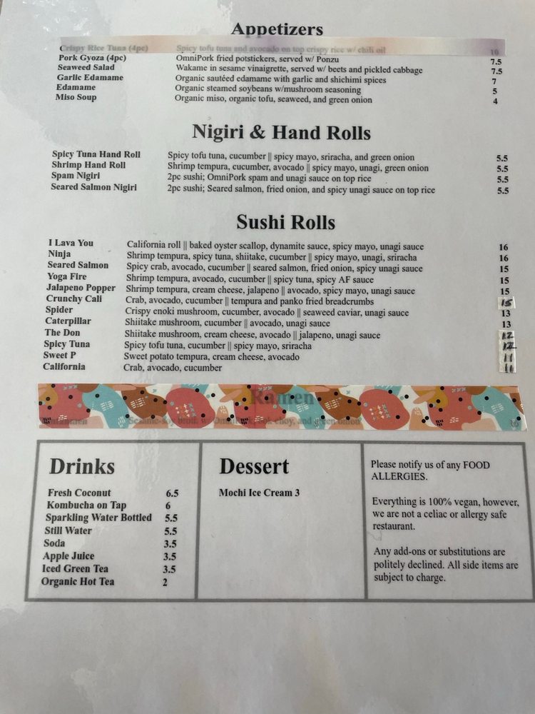 Located in Westminster, CA, Kenshō is a vegan sushi bar that offers a unique dining experience. With a diverse menu that includes dishes like sweet potato rolls and miso squash blossoms, Kenshō has received rave reviews from customers. The restaurant's commitment to using fresh, high-quality ingredients in their dishes is evident in every bite. Whether you're a vegan or just looking to try something new, Kenshō is sure to impress with its flavorful and balanced dishes. The friendly staff and cozy atmosphere make dining at Kenshō a truly enjoyable experience. Don't miss out on the opportunity to try their innovative vegan sushi creations - you won't be disappointed!